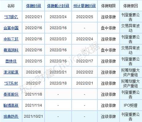 【兩市停復牌一覽】