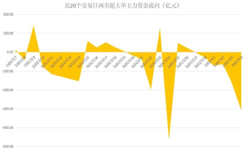 ▲近20個交易日兩市超大單主力資金流向