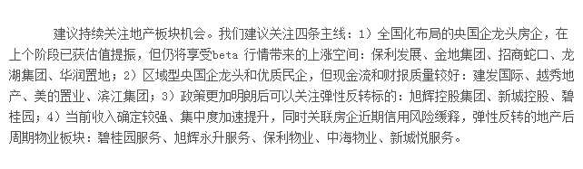 中銀國(guó)際證券表示,當(dāng)前地產(chǎn)板塊處于一輪上漲周期中的瓶頸期,我們認(rèn)為隨著基本面拐點(diǎn)的到來(lái),第二個(gè)上漲階段將會(huì)開(kāi)啟。從我們跟蹤的高頻數(shù)據(jù)來(lái)看,銷售已有結(jié)構(gòu)性的微復(fù)蘇。因此建議關(guān)注三季度反轉(zhuǎn)的板塊行情,中長(zhǎng)期關(guān)注龍頭份額提升及模式優(yōu)化后的主線邏輯。