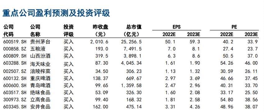 白酒方面,國(guó)信證券表示,基本面邊際改善趨勢(shì)基本確立,板塊布局價(jià)值依舊凸顯。2Q22白酒終端動(dòng)銷受疫情影響較大,酒企基本面雖短期承壓,但消費(fèi)升級(jí)和頭部集中趨勢(shì)不改,高端及地產(chǎn)酒頭部品牌依然展現(xiàn)了較強(qiáng)的抗風(fēng)險(xiǎn)能力。目前白酒終端動(dòng)銷呈邊際復(fù)蘇態(tài)勢(shì),酒企普遍時(shí)間過(guò)半任務(wù)過(guò)半,優(yōu)勢(shì)酒企2Q22 報(bào)表業(yè)績(jī)確定性較強(qiáng)。展望后續(xù),本輪白酒疫后需求復(fù)蘇或更平緩且更不均衡,高端酒和次高端及地產(chǎn)酒頭部品牌需求韌性更強(qiáng)。一方面,對(duì)比2020 年,當(dāng)下白酒的疫后消費(fèi)復(fù)蘇可能更加平緩,或有反彈性消費(fèi),但難出現(xiàn)報(bào)復(fù)性消費(fèi);另一方面,本輪疫后白酒消費(fèi)復(fù)蘇相較于2020年可能更不均衡,高端酒、次高端及地產(chǎn)酒龍頭品牌復(fù)蘇更快,低端酒復(fù)蘇更慢??傮w而言,高端酒受益需求剛性經(jīng)營(yíng)穩(wěn)健,基本面有望保持平穩(wěn);次高端酒乘消費(fèi)升級(jí)東風(fēng),需求有望加速回暖,疫情影響消退后業(yè)績(jī)彈性有望繼續(xù)顯現(xiàn);地產(chǎn)酒憑借基地市場(chǎng)優(yōu)勢(shì),產(chǎn)品恢復(fù)性增長(zhǎng)和結(jié)構(gòu)升級(jí)并現(xiàn),業(yè)績(jī)確定性較強(qiáng)。