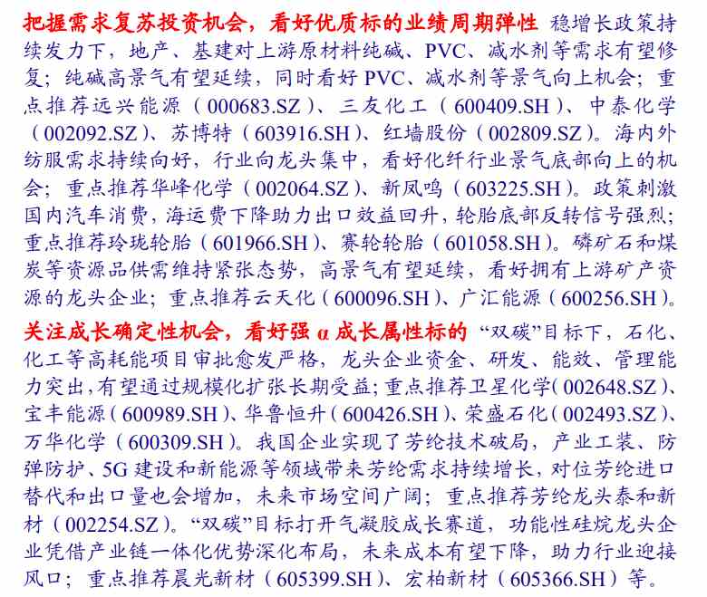 另外,中國(guó)銀河證券指出,穩(wěn)增長(zhǎng)政策持續(xù)發(fā)力,看好H2周期&成長(zhǎng)共振22Q1行業(yè)景氣延續(xù),各子行業(yè)盈利分化明顯,在33個(gè)子行業(yè)中,歸母凈利潤(rùn)同比提升和下降的比例各占50%。22Q2原料成本抬升疊加疫情壓制需求,預(yù)期Q2盈利受到影響較大。隨著穩(wěn)增長(zhǎng)政策的持續(xù)發(fā)力,預(yù)期H2行業(yè)盈利將逐漸改善,當(dāng)前仍是行業(yè)布局比較好的時(shí)點(diǎn)。建議重點(diǎn)關(guān)注相關(guān)龍頭企業(yè)盈利預(yù)期改善帶來(lái)的業(yè)績(jī)彈性以及持續(xù)進(jìn)行優(yōu)質(zhì)產(chǎn)能擴(kuò)張帶來(lái)的成長(zhǎng)屬性。