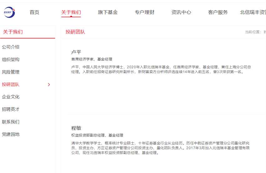 圖片來源:北信瑞豐基金管理有限公司官網(wǎng)截圖