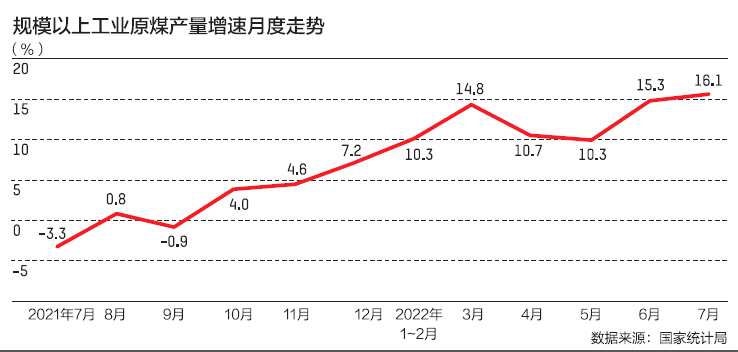 隨著俄烏沖突影響世界能源形勢、加劇進口煤炭供給端的不確定性,國際煤價居高不下,國內(nèi)煤炭增產(chǎn)成為保供的關(guān)鍵。國家統(tǒng)計局的信息顯示,1~7月,生產(chǎn)原煤25.6億噸,同比增長11.5%;進口煤炭13852萬噸,同比下降18.2%。