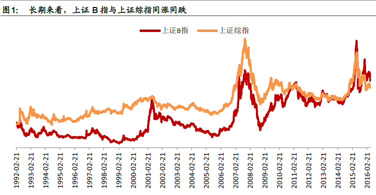 針對(duì)去年股災(zāi)期間B股所謂的先行指標(biāo)作用,華泰證券表示,我們認(rèn)為 B 股轉(zhuǎn) A 股的潛在利好和美元 12 月加息是助推 B 股獲得超額漲幅的重要因素。但實(shí)際上B 股市場(chǎng) 15 年下半年的暴漲并無(wú)基礎(chǔ), 12 月突然下跌是 B 股前期累積巨大漲幅后的調(diào)整。本次 B 股和 A 股都處于一個(gè)尋底的過(guò)程中, B 股的下跌不會(huì)帶領(lǐng) A 股的下跌。