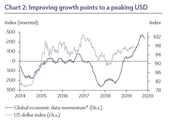 科爾認(rèn)為,隨著全球經(jīng)濟(jì)增長(zhǎng)周期在2019年開(kāi)始轉(zhuǎn)向更高水平,美國(guó)與全球其他經(jīng)濟(jì)體的差距將會(huì)縮小。與此同時(shí),美元和其他貨幣之間的差距也將縮小。他還表示,2019年下半年全球周期性背景的改善將在美元見(jiàn)頂過(guò)程中發(fā)揮決定性的作用。