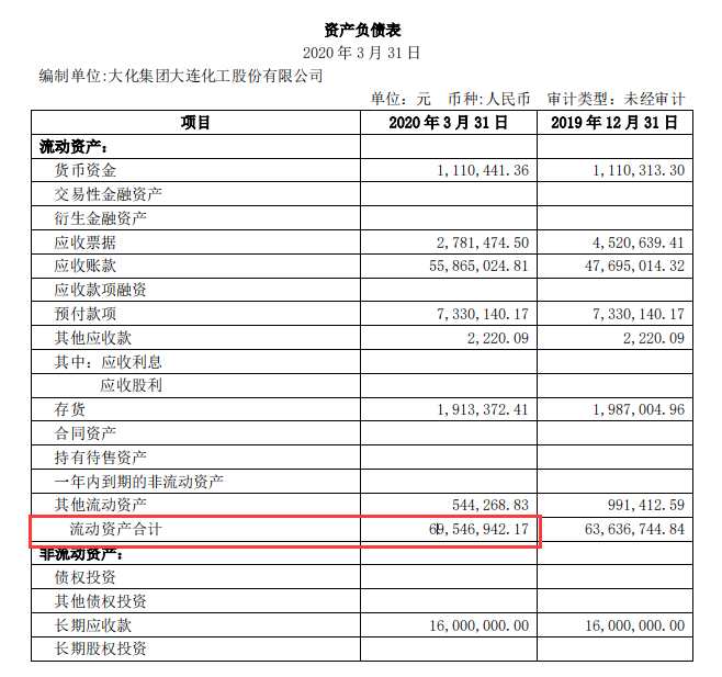 從2020年一季報(bào)中可以窺見(jiàn)*ST大化B目前的財(cái)務(wù)狀況緊張程度。截至3月31日,公司流動(dòng)資產(chǎn)合計(jì)6954.69萬(wàn)元,流動(dòng)負(fù)債則高達(dá)7.63億元。