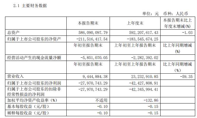 一季報(bào)顯示,公司歸屬于上市公司股東的凈利潤(rùn)為-27970743.29元,上年同期為-42427808.91元。一季度公司經(jīng)營(yíng)活動(dòng)產(chǎn)生的現(xiàn)金流量?jī)纛~為-5851070.05元。