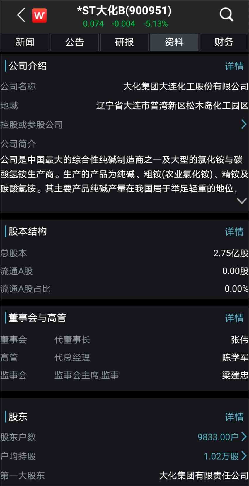 股價(jià)暴跌96% *ST大化B成第二只面值退市B股!半年停產(chǎn)135天 流動(dòng)負(fù)債超7億元