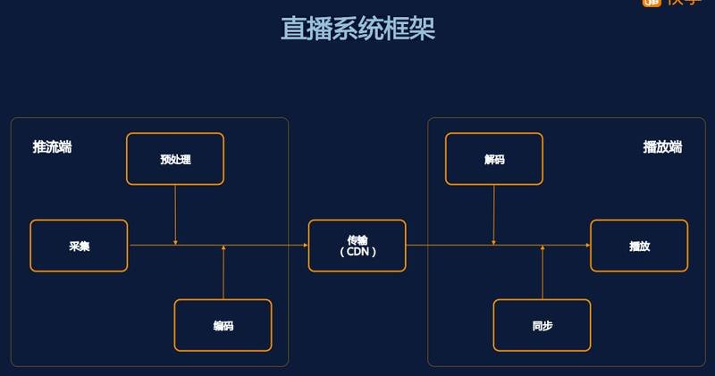 下面先介紹一下快手的直播系統(tǒng)端到端的處理流程:視音頻信號實(shí)時采集,經(jīng)過預(yù)處理和音視頻編碼,封裝發(fā)送到 CDN 源站,播放端從 CDN 邊緣拉到數(shù)據(jù),然后進(jìn)行解碼,經(jīng)過音視頻同步之后,給觀眾展現(xiàn)出來。