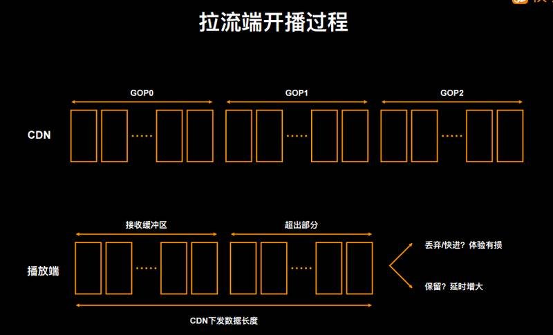 拉流端開播的過程,如前面所述,主要是連接 CDN 節(jié)點(diǎn)拉取數(shù)據(jù),數(shù)據(jù)的解碼、渲染這幾個步驟。CDN 的邊緣節(jié)點(diǎn)一般都會緩存一部分?jǐn)?shù)據(jù),便于拉流端在任何時刻開始拉流都能拉到數(shù)據(jù)。