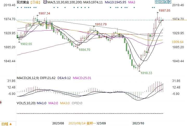 摘要: ——周二(10月24日),由于美國10月采購經(jīng)理人數(shù)據(jù)好于預(yù)期,現(xiàn)貨黃金出現(xiàn)短暫的跳水行情,金價(jià)一度跌破1970美元/盎司關(guān)口,最低曾探至1953.10美元/盎司水平。