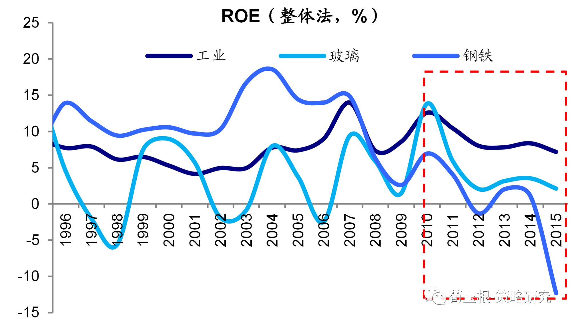 當(dāng)下時(shí)點(diǎn)看,傳統(tǒng)的低端制造業(yè)盈利能力確實(shí)在逐步惡化,上市公司中工業(yè)行業(yè)整體的ROE從10年的13.4%下滑到15年的7.3%,福耀玻璃所處的玻璃行業(yè)在10年也結(jié)束了上升趨勢(shì)開(kāi)始下滑,從高點(diǎn)的13.8%下滑到15年的2.1%,其他制造行業(yè)如鋼鐵行業(yè)也從7.0%下滑到-12.3%。