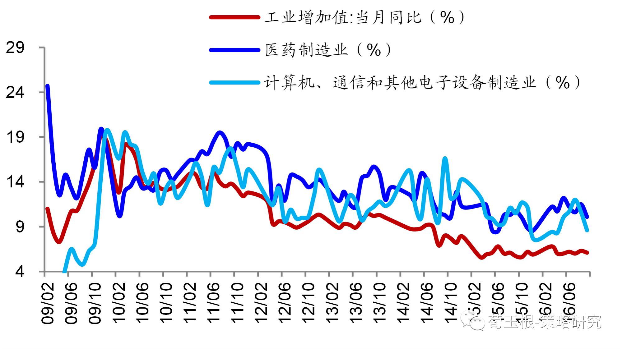 10年至今工業(yè)增加值同比從18.1%下降至6.2%,但計(jì)算機(jī)、通信和電子設(shè)備業(yè)工業(yè)增加值從10年3月的高點(diǎn)19.5%降至12年6月份最低點(diǎn)9.6%后企穩(wěn),12年以來(lái)平均增速維持在11%左右。醫(yī)藥制造業(yè)工業(yè)增加值從11年7月高點(diǎn)的19.5%降至14年8月的10.6%后企穩(wěn),14年8月以來(lái)平均增速為10.6%。統(tǒng)計(jì)局《國(guó)民經(jīng)濟(jì)和社會(huì)發(fā)展統(tǒng)計(jì)公報(bào)》中將醫(yī)藥制造業(yè),航空、航天器及設(shè)備制造業(yè),電子及通信設(shè)備制造業(yè),計(jì)算機(jī)及辦公設(shè)備制造業(yè),醫(yī)療儀器設(shè)備及儀器儀表制造業(yè),信息化學(xué)品制造業(yè)合稱為高技術(shù)制造業(yè),近年來(lái)其增加值增速顯著快于工業(yè)整體,15年高技術(shù)制造業(yè)增加值增長(zhǎng)10.2%,占規(guī)模以上工業(yè)增加值的比重為11.8%。相似地,我們將醫(yī)藥制造業(yè),鐵路、船舶、航空航天和其他運(yùn)輸設(shè)備制造業(yè),計(jì)算機(jī)、通信和其他電子設(shè)備制造業(yè),儀器儀表制造業(yè)視為高端制造業(yè),其工業(yè)企業(yè)營(yíng)業(yè)收入占全部制造業(yè)之比逐年增大,從12年2月的13.2%增至16年11月的14.5%。
