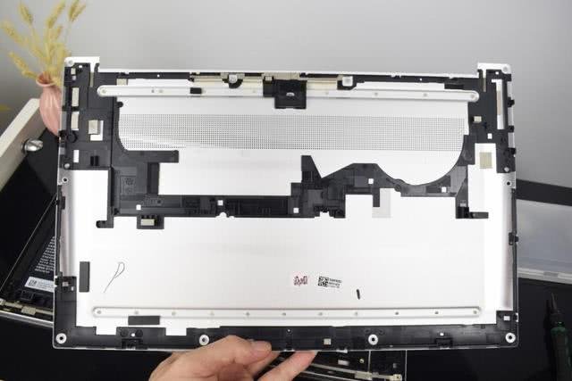 很多買(mǎi)筆記本的朋友很關(guān)注產(chǎn)品的內(nèi)部做工以及拓展能力,我們把底部十顆六角螺絲擰掉就能拆開(kāi)后蓋,卡扣十分緊密、做工扎實(shí),金屬用料也很足。