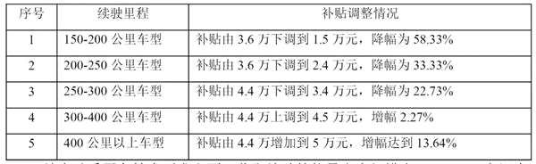 例如,對(duì)續(xù)航里程150~200公里的純電動(dòng)車型補(bǔ)貼降幅達(dá)58.33%,對(duì)續(xù)航里程300~400公里車型的補(bǔ)貼反而提高了2.27%,對(duì)續(xù)航400公里以上車型補(bǔ)貼提高幅度達(dá)13.64%。