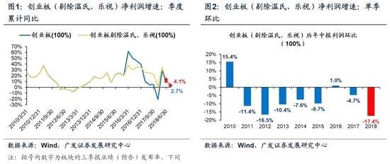 1、創(chuàng)業(yè)板三季報預(yù)告業(yè)績增速繼續(xù)回落。創(chuàng)業(yè)板三季報預(yù)告業(yè)績增速2.7%,相對于中報的10.1%明顯回落。剔除溫氏、樂視后,創(chuàng)業(yè)板三季報預(yù)告業(yè)績增速4.1%,相對于中報的13.3%也大幅下行。創(chuàng)業(yè)板(剔除溫氏、樂視)三季報單季環(huán)比增速僅為-17.4%,顯著低于季節(jié)性,為2010年以來的最低水平。