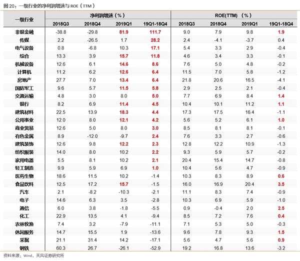 (1)主板:主板及主板非金融19Q1營(yíng)收增速分別為11.2%和9.6%,較18Q4的11.2%和12.5%小幅下滑0.04pct和3.0pct;同樣的,凈利潤(rùn)增速卻有明顯的提升,分別為11.4%和4.9%,較18Q4的3.0%和4.2%回升8.4pct和0.7pct。
