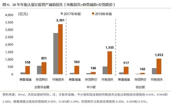 帶來這種情況原因,一方面由于18Q4大量計(jì)提資產(chǎn)減值損失(壞賬損失>商譽(yù)減值>存貨跌價(jià),如圖表4),造成了18Q4極低的凈利潤(rùn)增速;另一方面,19Q1管理費(fèi)用率的大幅下降帶來凈利率的回升,這可能是去杠桿環(huán)境中企業(yè)由于資金壓力導(dǎo)致開支減少,或者其他非常規(guī)性因素的影響,我們認(rèn)為持續(xù)改善的可能性較低(在第二部分有進(jìn)一步分析)。因此,對(duì)19Q1凈利潤(rùn)增速的較大回升應(yīng)多一分謹(jǐn)慎的認(rèn)識(shí)。
