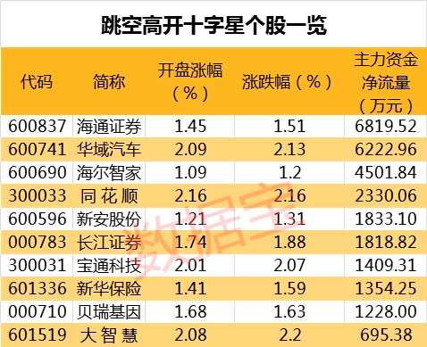 長(zhǎng)信科技等跳空高開十字星