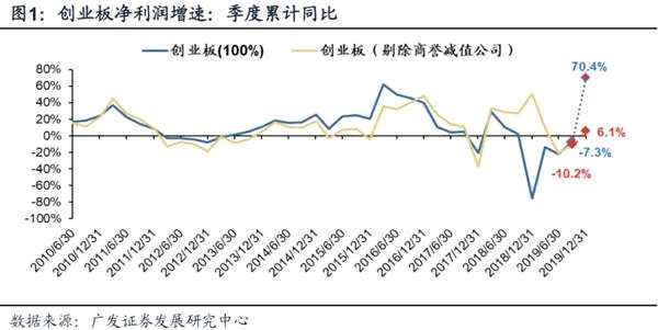 摘要: 報告摘要根據(jù)統(tǒng)計數(shù)據(jù),截止2月3日收盤,創(chuàng)業(yè)板19年報業(yè)績(預(yù)告)披露率接近100%,主要變化如下:(備注:本文所用的凈利潤均為季度累計凈利潤,其中,預(yù)告的凈利潤采用上下限的中值)●受益于去年的低基數(shù)