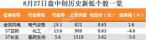數(shù)據(jù)顯示,今日有3只個股盤中創(chuàng)出歷史新低,分別屬于電氣設(shè)備、化工和醫(yī)藥生物等領(lǐng)域。
