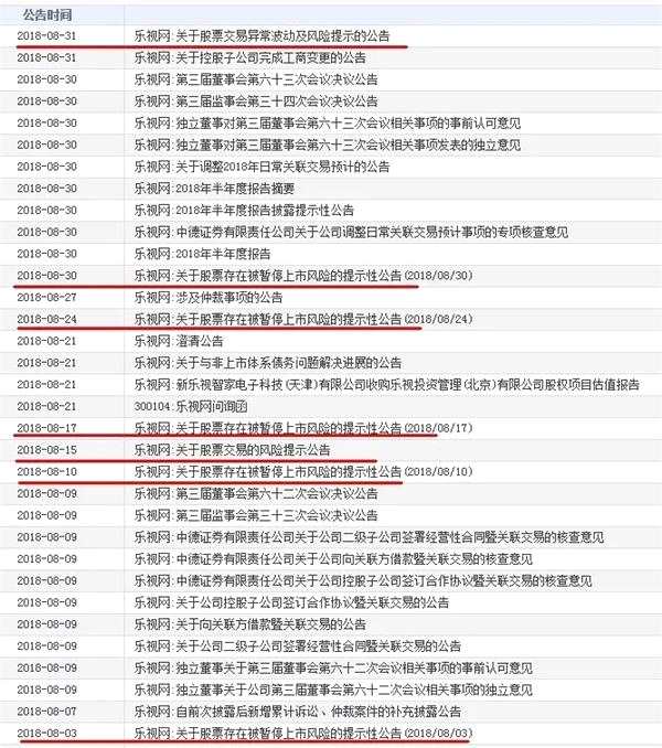樂視網(wǎng)2018年的半年報(bào)可謂“慘不忍睹”,同時又處于退市的邊緣。最近一個月,樂視網(wǎng)發(fā)布的風(fēng)險提示公告就有7條。