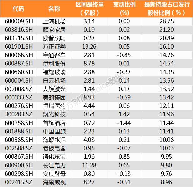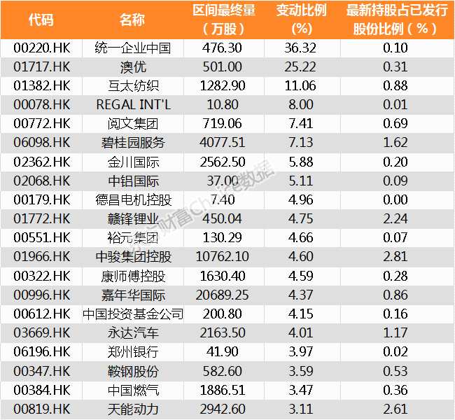 持股比例,家公司名單,北向資金,增持,減持
