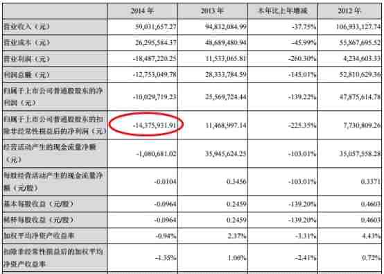 2014年年報顯示,北京君正扣除非經(jīng)常性損益后的凈利潤為-1437.59萬元。