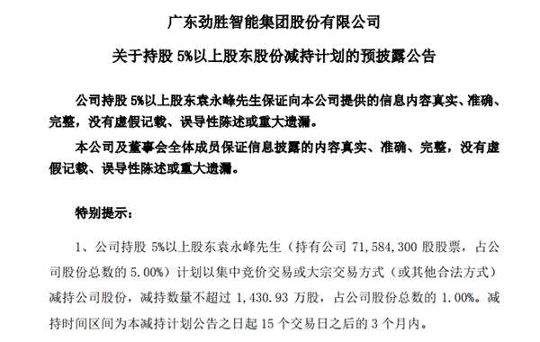 然而在這兩天,勁勝智能一則公告似乎讓事情變得并不簡單。勵(lì)志故事背后的,是王老板近6年的套現(xiàn)準(zhǔn)備。