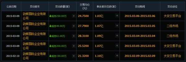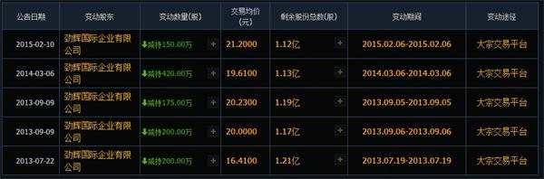 2013年到2015年初,王久全控制的勁輝國際進(jìn)行了多次減持套現(xiàn),伴隨股價(jià)的走勢以及2015年行情爆發(fā),幾乎每一次減持都減在當(dāng)時(shí)的高位。