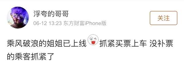 芒果TV大型綜藝《乘風(fēng)破浪的姐姐》周五低調(diào)上線,瞬間熱爆,周末繼續(xù)霸屏。東方財富股吧網(wǎng)友周五午后“號召”股友抓緊“買票上車”,隨后芒果超媒股價一度漲停,股價創(chuàng)出歷史新高,市值突破1000億大關(guān)。
