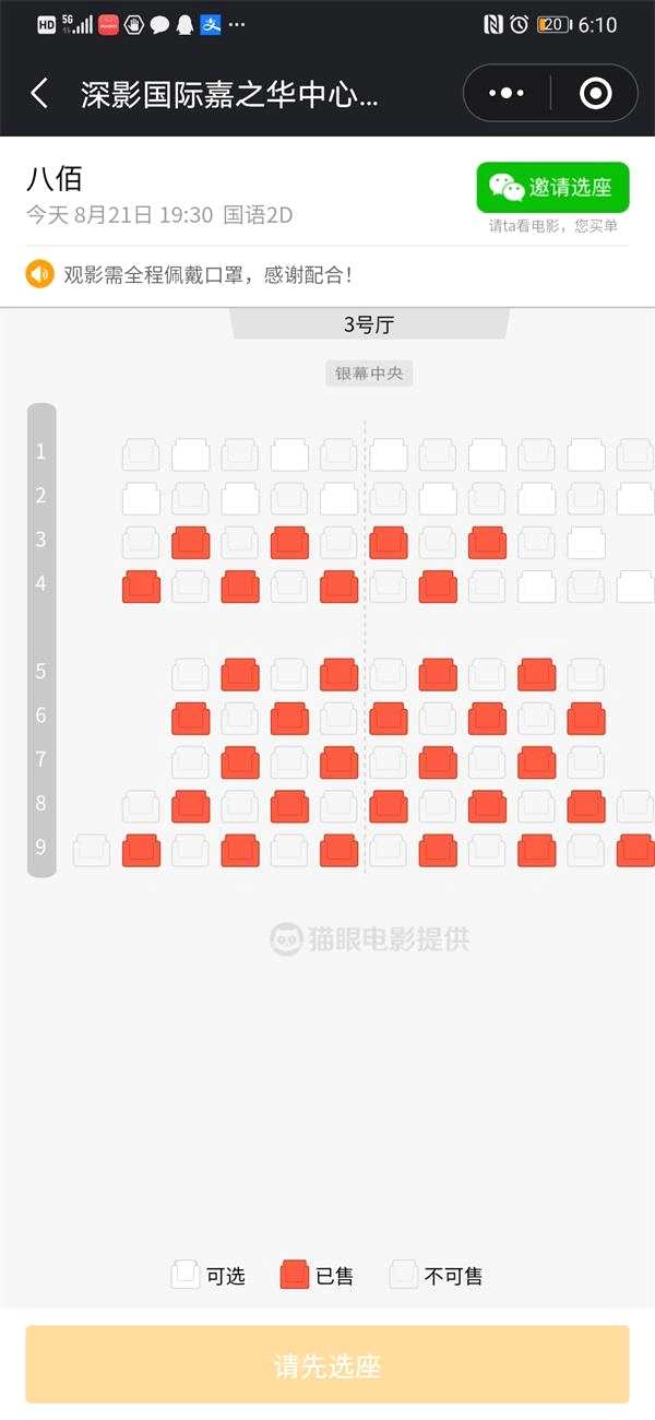 記者翻閱訂票網(wǎng)站,雖然疫情期間要求隔座,但是好位置幾乎都被預(yù)定。