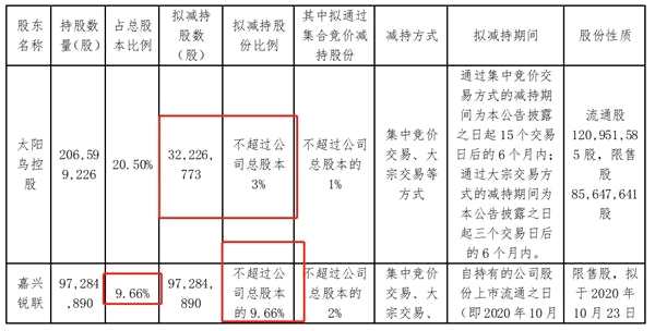 嘉興銳聯(lián)擬減持不超過9728.49萬(wàn)股,占公司總股本的9.66%;