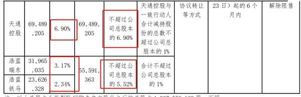 浩藍(lán)瑞東及其一致行動(dòng)人浩藍(lán)鐵馬擬合計(jì)減持5559.14萬(wàn)股,占公司總股本的5.52%。