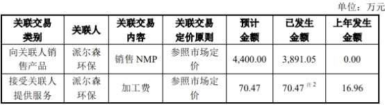 根據(jù)晶瑞電材于2021年11月25日披露的《關(guān)于補(bǔ)充確認(rèn)關(guān)聯(lián)交易暨預(yù)計(jì)2021年度新增日常關(guān)聯(lián)交易的公告》及11月26日披露的《補(bǔ)充公告》,2021年7月29日至2021年11月1日通過(guò)陜西奧贏時(shí)特商貿(mào)有限公司(以下簡(jiǎn)稱“奧贏時(shí)特”)向派爾森環(huán)??萍加邢薰?以下簡(jiǎn)稱“派爾森環(huán)?!?銷(xiāo)售NMP產(chǎn)品合計(jì)3891.05萬(wàn)元,占公司2020年末經(jīng)審計(jì)凈資產(chǎn)比例為2.81%;于2021年3月30日至2021年6月7日通過(guò)奧贏時(shí)特向派爾森環(huán)保采購(gòu)加工服務(wù)合計(jì)70.47萬(wàn)元,占公司2020年末經(jīng)審計(jì)凈資產(chǎn)比例為0.05%。