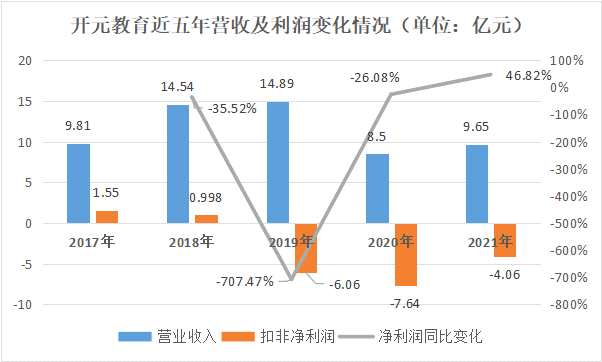 然而,在這個熱門賽道里卻是冷暖自知。日前,【開元教育(300338)、股吧】發(fā)布2021年度業(yè)績快報顯示,期內(nèi)扣非凈虧損4.06億元,這已經(jīng)是其連續(xù)虧損的第三年。