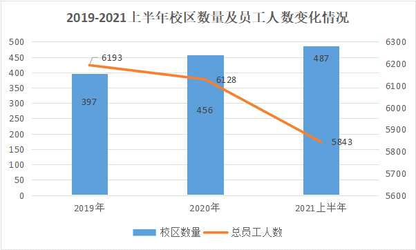 然而,開元教育的擴張野心并未就此止步。其在收購職業(yè)教育子公司外,其還在線下大面積開設(shè)校區(qū)。2019年年報指出,開元教育在164個城市開辦近397家校區(qū)。2020年報指出,開元教育在全國163個城市開辦近456家校區(qū)。2021半年報指出,開元教育在全國167個城市開辦487家校區(qū)。在業(yè)績虧損的情況下,開元教育僅一年半就在全國擴張了近100所學(xué)校。