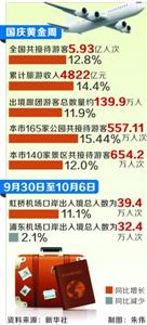 假日七天,鐵路抵達(dá)旅客260.7萬人次,同比增長10.8%;民航抵達(dá)旅客101.2萬人次,同比增長2.6%;港口抵達(dá)旅客1.1萬人次,同比增長9.9%;陸上長途客運抵達(dá)旅客57.6萬人次,同比增長10.8%。另據(jù)統(tǒng)計,本市星級賓館和其他旅館客房平均出租率為62%,同比增長七個百分點。