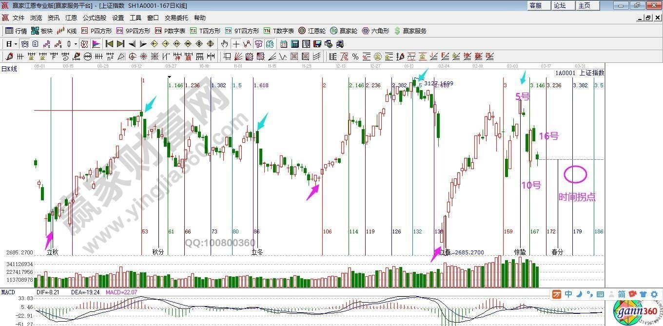 ★依據(jù)贏家江恩系統(tǒng)江恩黃金時間周期線分析:江恩時間周期循環(huán)預判3月未來時間窗口,10號、16號、26號,(5號驚蟄、20號春分)。