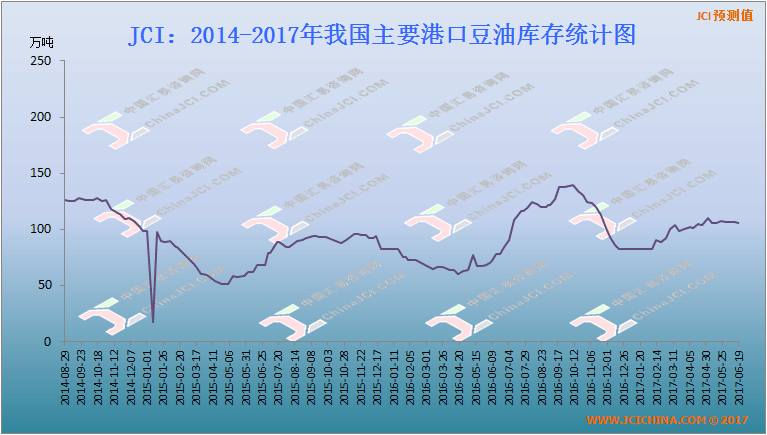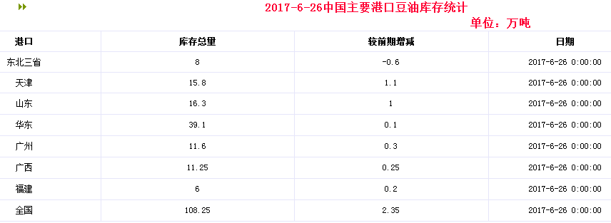 2017-6-26中國(guó)主要港口豆油庫(kù)存統(tǒng)計(jì)