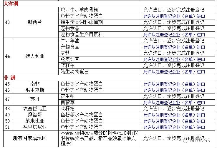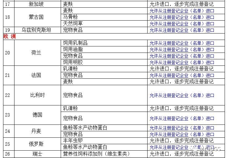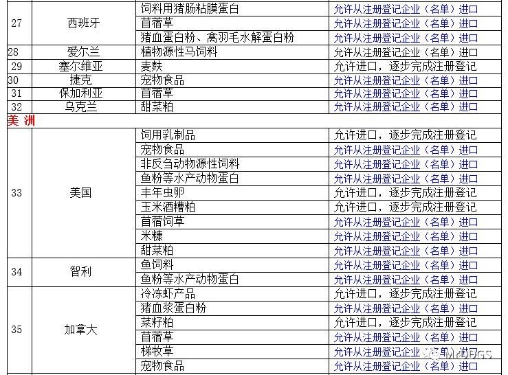 允許進(jìn)口飼料和飼料添加劑國(guó)家(地區(qū))產(chǎn)品名單(更新至2017年6月21日)