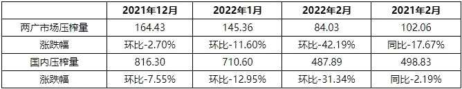兩廣市場月度壓榨量統(tǒng)計