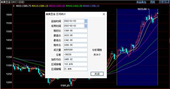 當前巴西大豆正處于收獲高峰期、阿根廷大豆處于生長關鍵期,南美產(chǎn)區(qū)天氣的持續(xù)干燥,使得市場對于南美大豆減產(chǎn)預期持續(xù)升溫,隨后的2月美農(nóng)報告中,減產(chǎn)數(shù)據(jù)也進一步兌現(xiàn)了市場的預期。在這樣的背景下,美豆期價開啟上漲模式,從年初的1300美分快速沖破1600美分大關,區(qū)間漲幅達18.41%,成本端的支撐效應為國內(nèi)市場帶來了足夠的漲價底氣。