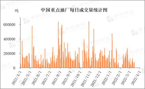 從油廠成交數(shù)據(jù)來看,截至3月15日,月內(nèi)累計(jì)成交83.27萬噸,日均成交不足10萬噸。終端成交心態(tài)出現(xiàn)較大變化,采購積極性有所降溫,為規(guī)避價(jià)格風(fēng)險(xiǎn),規(guī)模飼料企業(yè)隨用隨補(bǔ),采用現(xiàn)貨+基差點(diǎn)價(jià)模式為主,少數(shù)小型飼料企業(yè)受高價(jià)原料影響有停機(jī)停產(chǎn)情況出現(xiàn)。