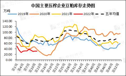 漲價的主要原因是供應(yīng)端遲遲無法恢復(fù)正常供應(yīng),以及供需節(jié)奏的意外錯配。這一市場節(jié)奏發(fā)酵于2021年11月,原因在于南美大豆減產(chǎn)的預(yù)期,以及國內(nèi)工廠受能源影響計劃外的暫停生產(chǎn)。一方面,進(jìn)口成本不斷提升,導(dǎo)致國內(nèi)工廠采購謹(jǐn)慎,節(jié)奏偏慢,直接導(dǎo)致后期大豆到港量偏少;另一方面,國內(nèi)工廠暫停生產(chǎn)的計劃不斷報出,加重了市場對于供應(yīng)穩(wěn)定的擔(dān)憂,看不到豆粕庫存增加的需求端難以過分看空。截至上周,主要壓榨企業(yè)的豆粕庫存仍處于近五年的最低值。從目前看,這兩方面在春節(jié)后繼續(xù)推升市場價格。