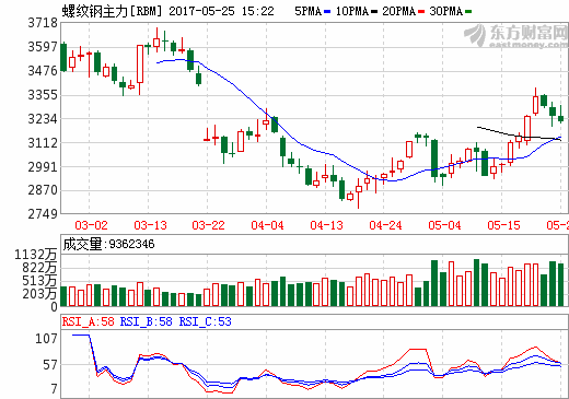 摘要: 周四(5月25日)商品跌多漲少,黑色系普遍回落,截止下午收盤,鐵礦石下挫3.97%,滬鎳、螺紋鋼、硅鐵跌逾1%,而漲幅方面,瀝青、甲醇漲逾2%。5月中旬以來,受鋼材庫存快速下降影響,螺紋鋼期貨價(jià)格連續(xù)