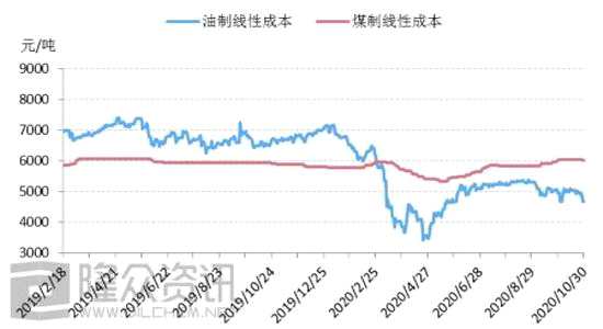 相關(guān)產(chǎn)品:截止10月30日油制線性成本在4657元/噸,較上個月下降299元/噸,油制線性利潤2893元/噸。煤制與油制聚乙烯生產(chǎn)利潤相比,目前油制聚乙烯利潤比煤制高1559元/噸。