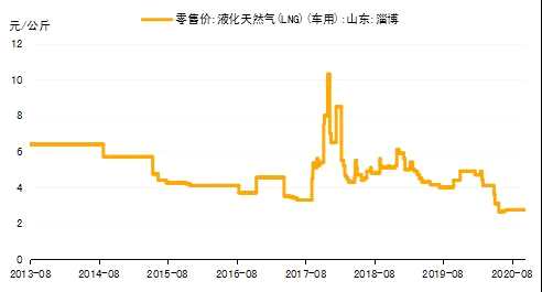 圖5 山東淄博液化天然氣零售價(jià)在17年末大幅上漲