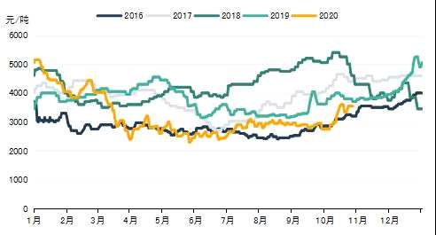 沙特上11月份丙烷CP價(jià)格55美元/噸至430美元/噸,丁烷CP價(jià)格60美元/噸至440美元/噸。丙烷折合到岸成本預(yù)估在3383元/噸左右,丁烷到岸成本預(yù)估在3531元/噸左右。10月29日廣州華凱現(xiàn)貨價(jià)格是3750元/噸,東莞九豐現(xiàn)貨價(jià)格是3570元/噸。除了2018年,11月份至1月份都是LPG的旺季,沙特上調(diào)11月份的丙烷CP價(jià)格與丁烷CP價(jià)格,可能顯示今年的旺季已經(jīng)開始。