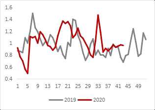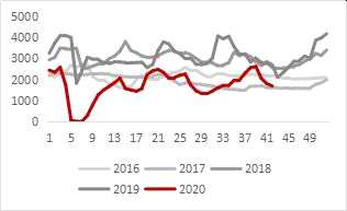 從觀測(cè)數(shù)據(jù)來(lái)看,繼5、6月補(bǔ)欄狀況較差之外,9、10月市場(chǎng)補(bǔ)欄情況也一般,空欄率繼續(xù)上升,市場(chǎng)總體的供應(yīng)仍然依靠去年相對(duì)較高的補(bǔ)欄數(shù)量。市場(chǎng)小蛋減少的狀況證實(shí)了5月開(kāi)始的弱勢(shì)補(bǔ)欄,但不同區(qū)域所反映的蛋重結(jié)構(gòu)也有一定差異,還沒(méi)有形成由小蛋帶動(dòng)的蛋價(jià)加速上行的趨勢(shì),需要流通渠道中更多的因素加持。
